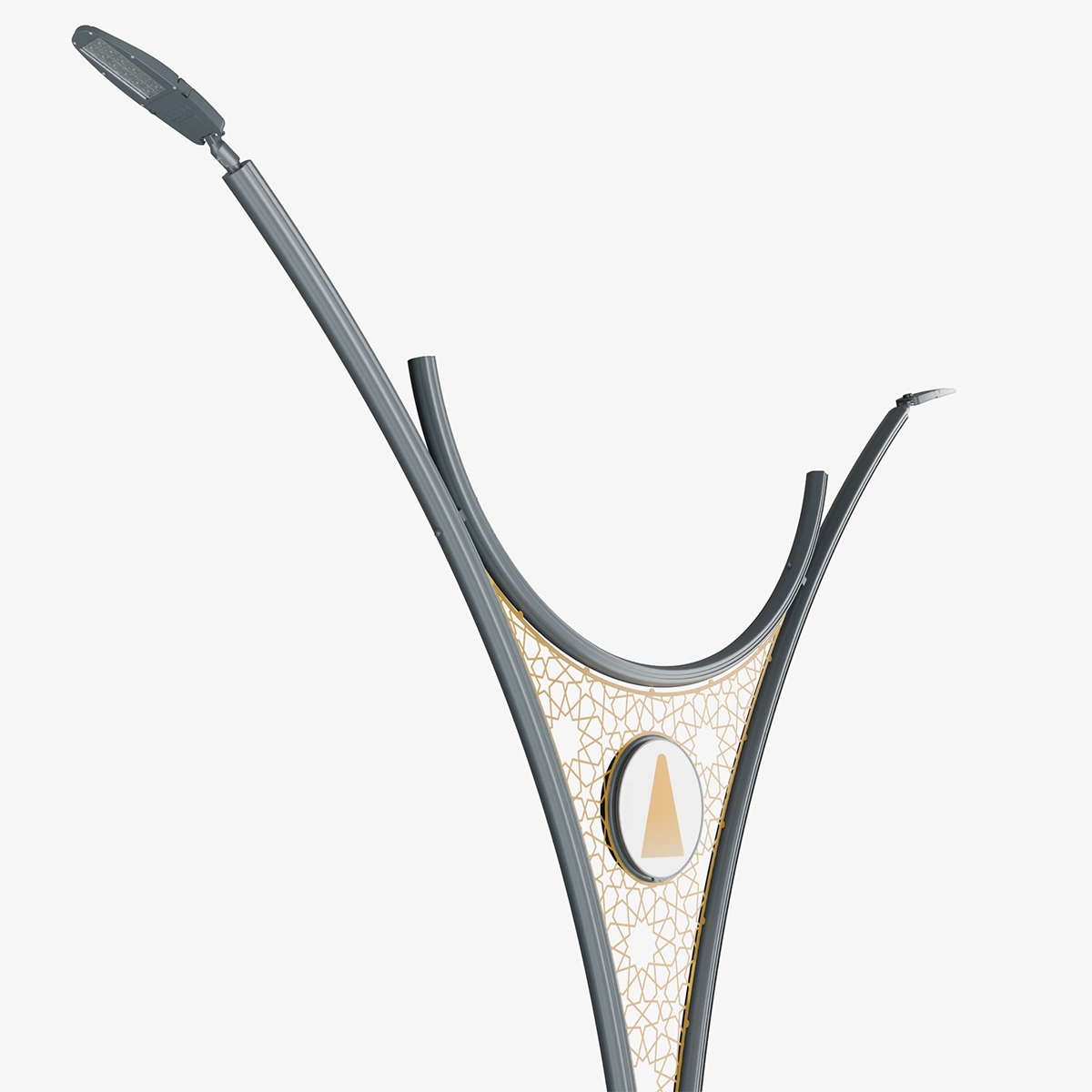 Vega brings a distinctive aesthetic identity to urban spaces with its bold form and decorative details. The triangular central panel adds a strong visual accent, adaptable to various urban scales.