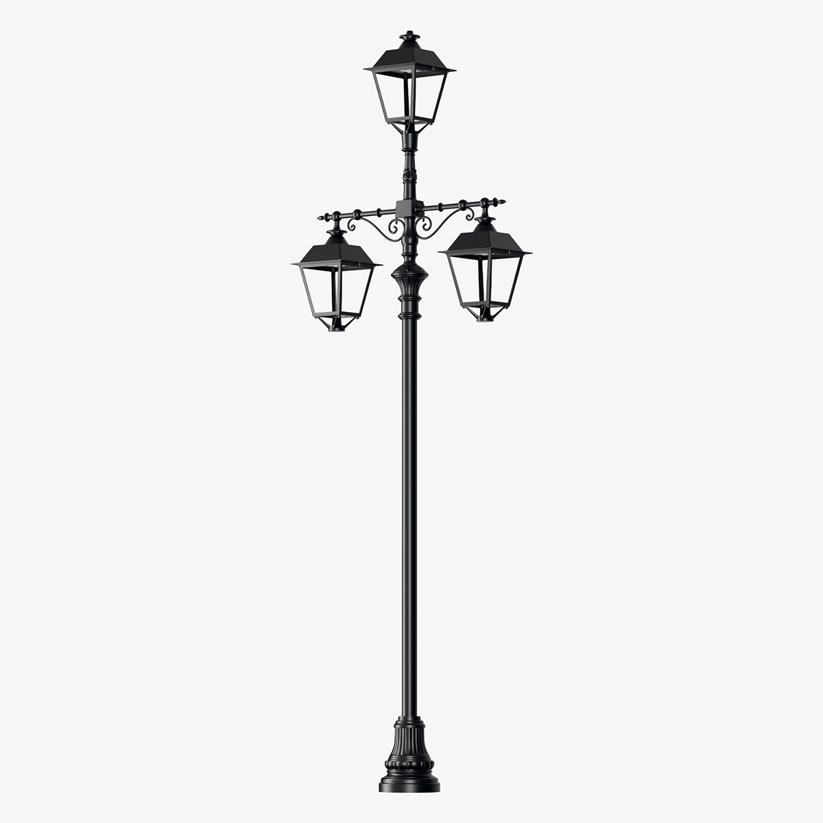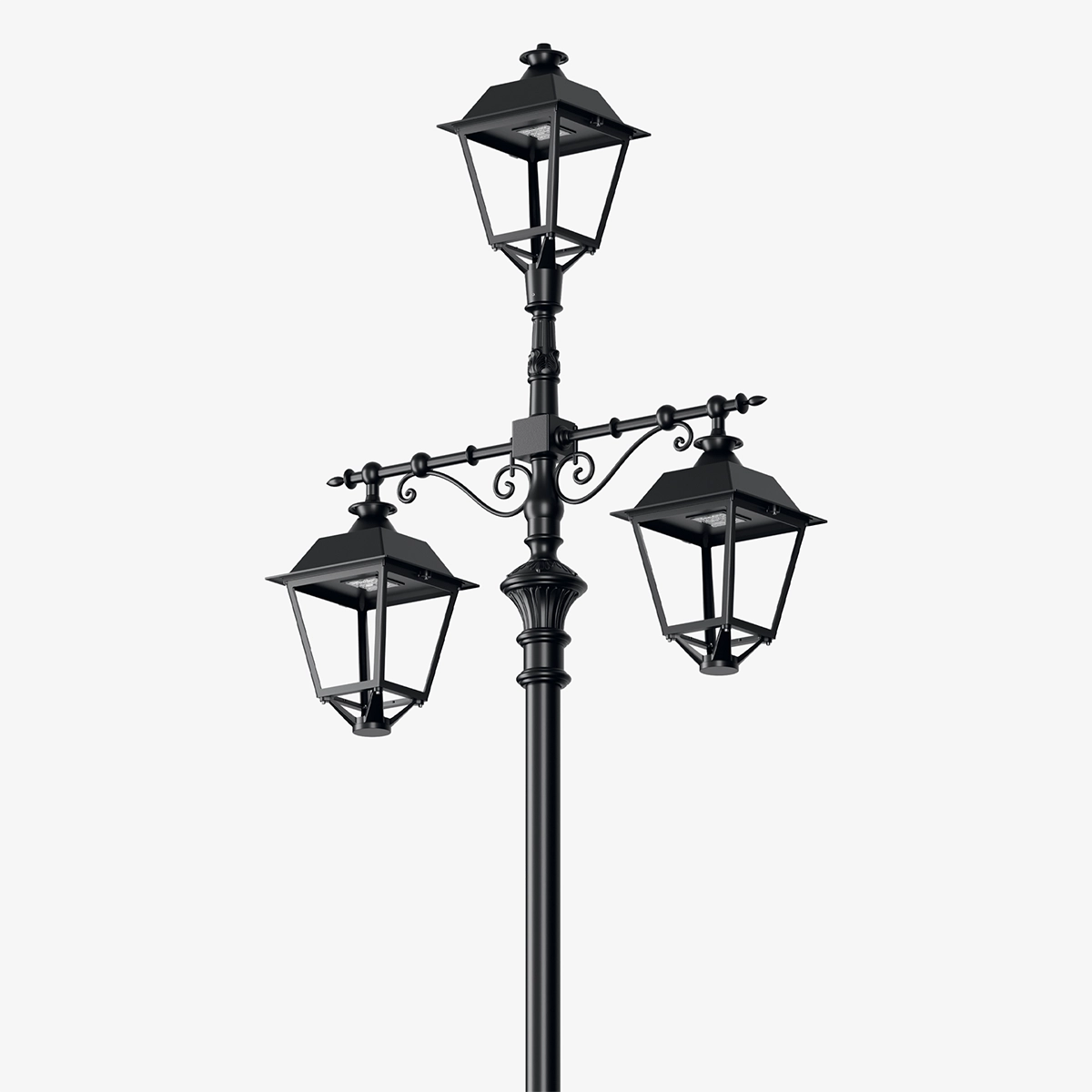 Luce presents a strong presence in the urban environment with its balanced form inspired by classic street lighting. Its supporting structure and symmetrically positioned upper lighting elements emphasize both vertical and horizontal impact, giving the design a distinctive silhouette.