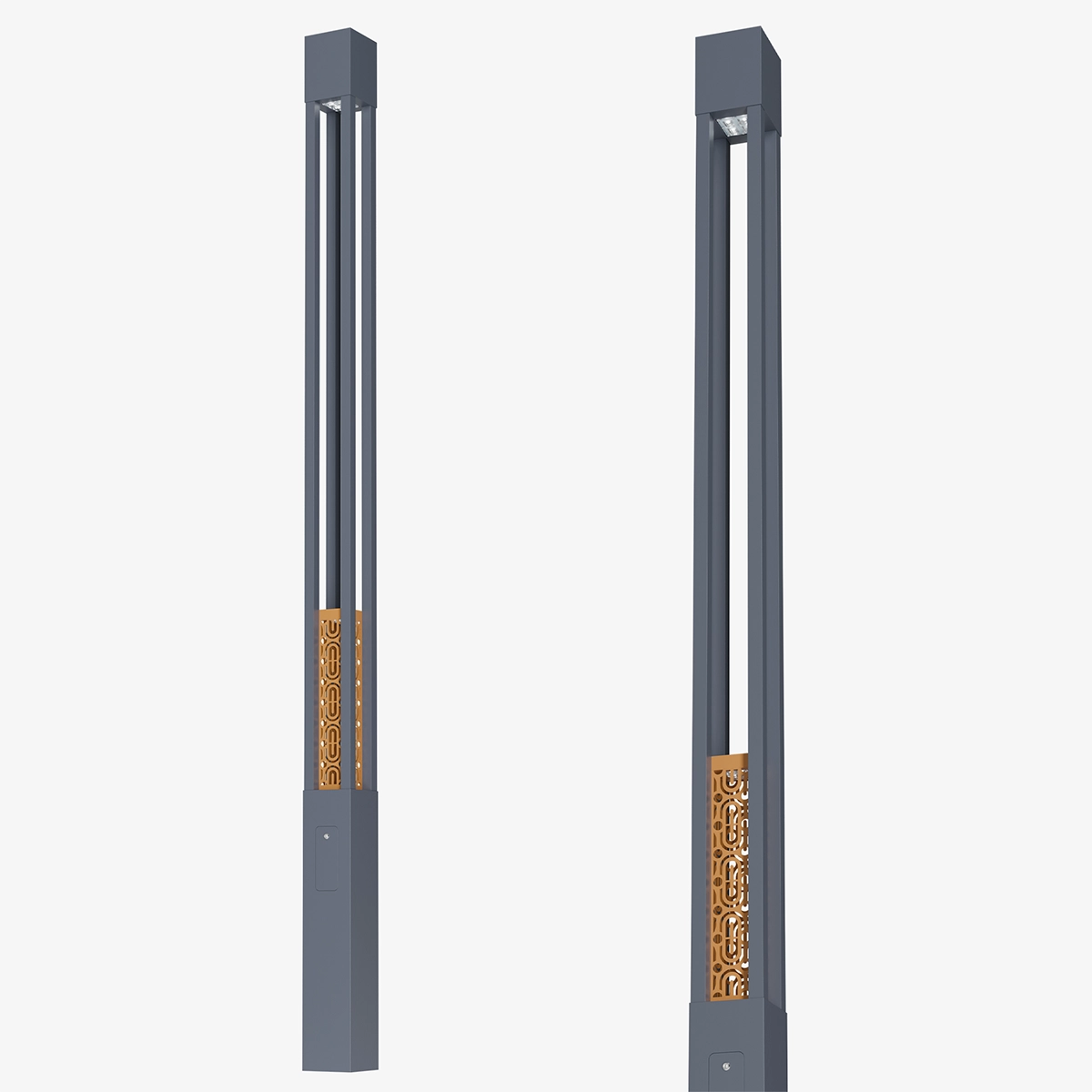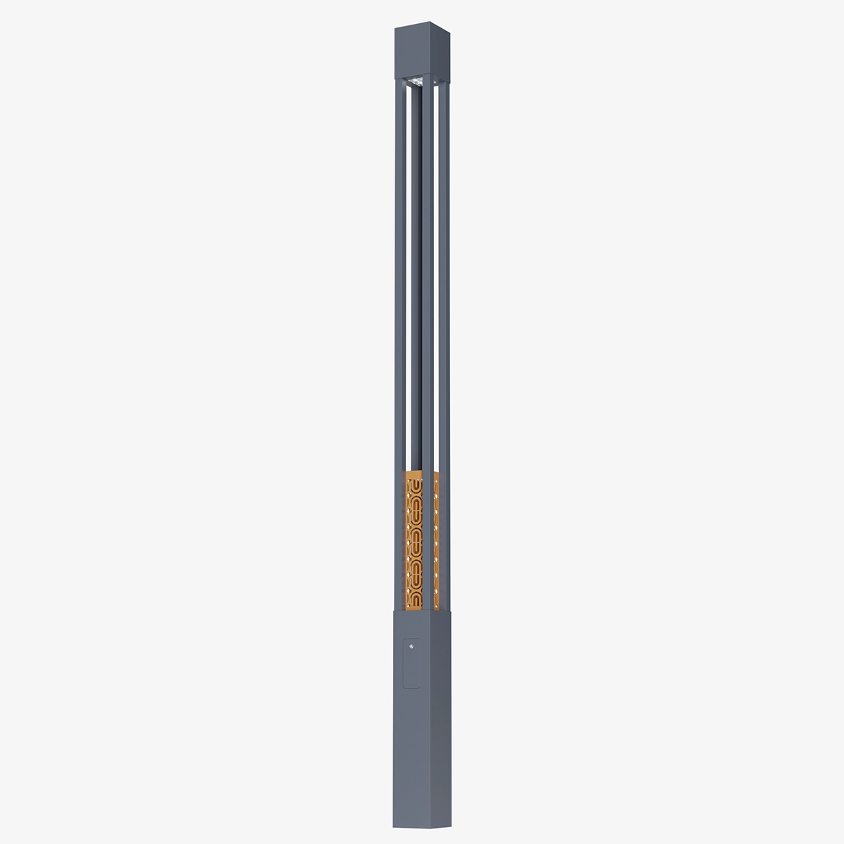 It’s minimalist form is enriched by the warmth of wood. The metal structure adds clarity and strength, giving the design a sophisticated urban presence.