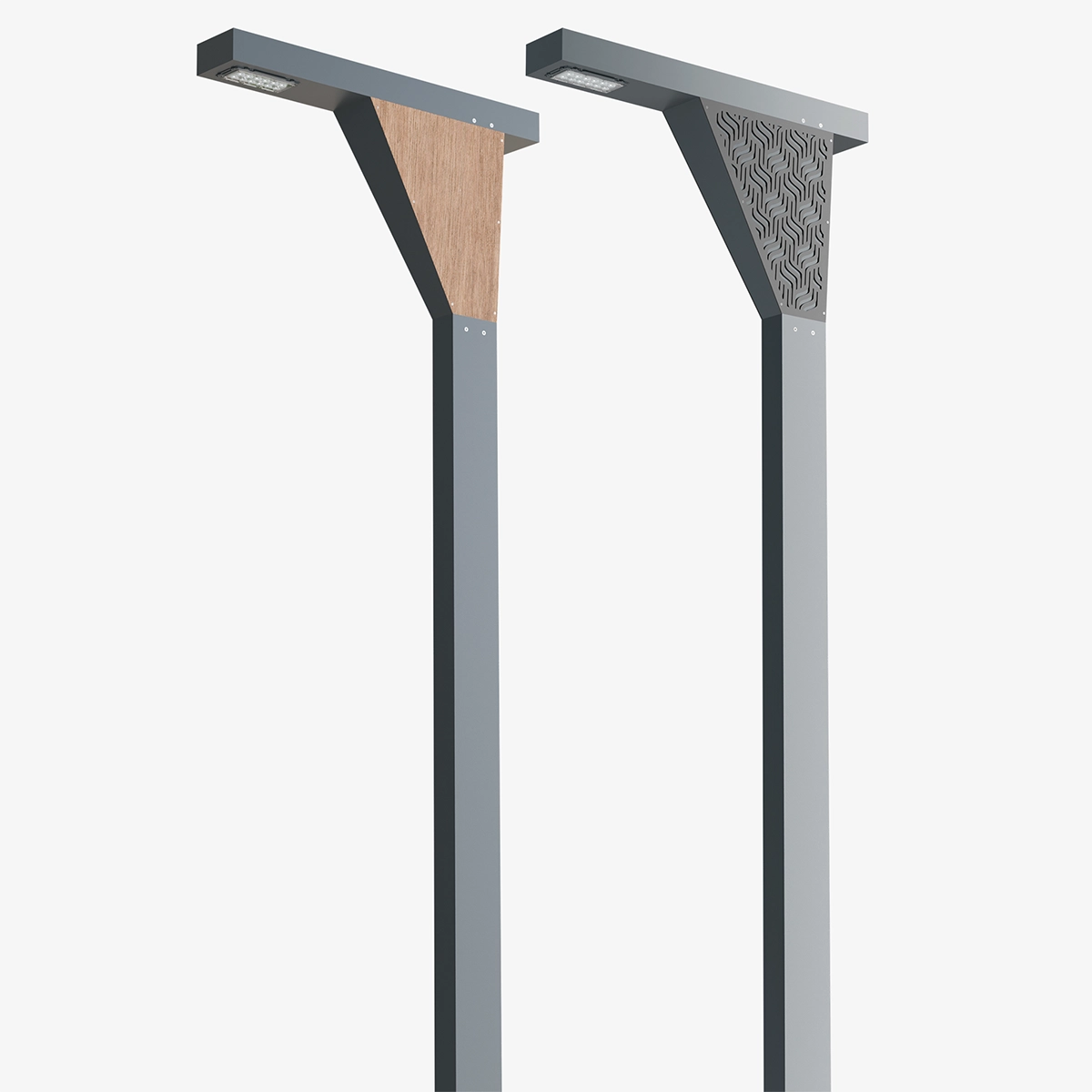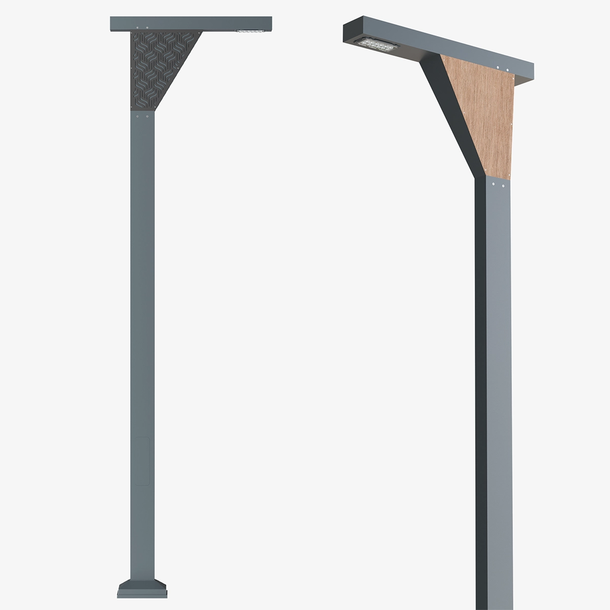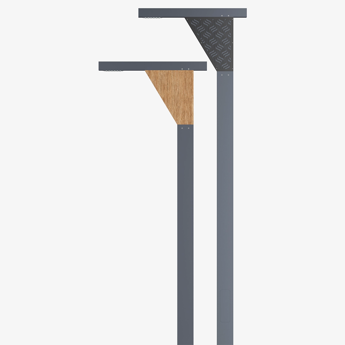 It carries the clear lines of modern architecture. The wooden surface adds warmth to the design, while the metal form emphasizes its strength. The balance between natural and contemporary elements completes the urban aesthetic.