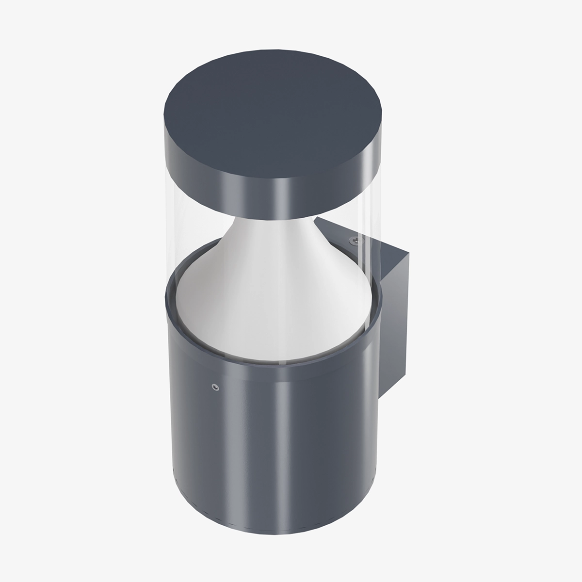 A modern wall sconce featuring a cylindrical body and transparent glass structure that delivers soft and controlled light distribution. It provides both decorative impact and balanced ambient lighting for façades and entrance areas.